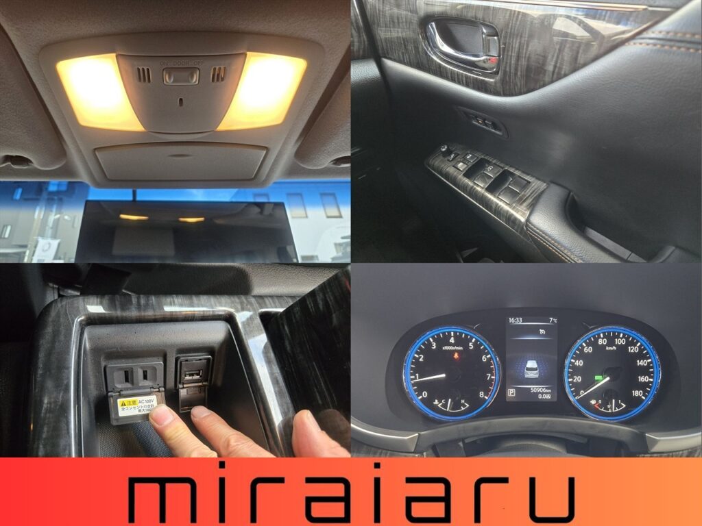 純正フリップダウンモニターやアラウンドビューモニターなど、プレミアムにふさわしい充実装備が揃っています。