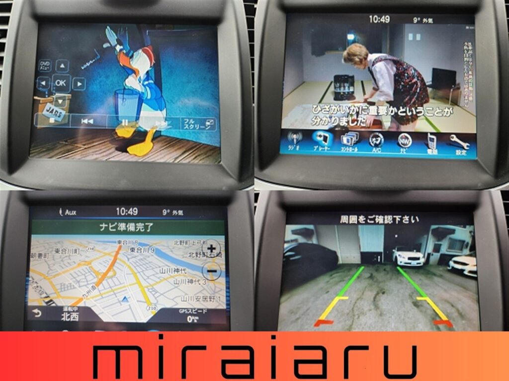 ナビ・フルセグ・Bluetooth・DVD・MSVに加え、バックカメラやクリアランスソナーなど運転をサポートする装備も搭載。
